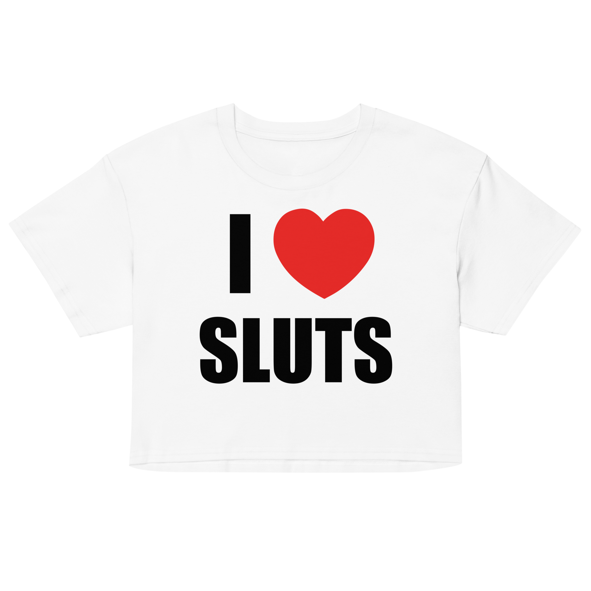 Add a cheeky twist to your wardrobe with our "I Heart Sluts" crop top, a playful parody of the iconic "I Heart New York" design. Perfect for those who love to mix humor with bold fashion statements, this crop top captures the fun, irreverent spirit of today’s trends. Whether you’re hitting the club, lounging at home, or making a statement at a party, this top is all about embracing confidence and having a laugh. Made from soft, breathable fabric, it’s designed to be as comfortable as it is eye-catching. Ideal for anyone with a sense of humor and a love for edgy fashion, this crop top is your go-to piece for turning heads and sparking conversations wherever you go.