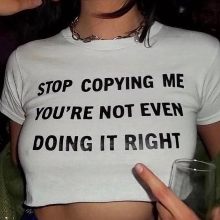 Make a bold statement with our "Stop Copying Me, You’re Not Even Doing It Right" crop top, a design so iconic that even Vetements couldn’t resist ripping it off. This crop top is perfect for those who are tired of imitation and want to stand out with original style. With its sharp, witty message, this top is ideal for fashion-forward individuals who lead, not follow. Crafted from soft, high-quality fabric, it offers both comfort and a dose of attitude, making it a must-have for anyone who’s serious about their style. Whether you’re at an event, kicking back with friends, or just out and about, this crop top lets everyone know that originality is key—and you’re the one setting the trends.